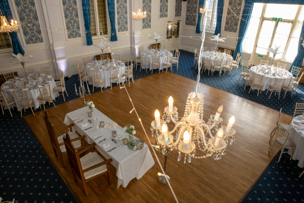 The fabulous Elizabethan Ballroom comprises a magnificent double-height ballroom featuring sparkling chandeliers, minstrel galleries and a sprung dance floor adjoined by an exclusive, contemporary bar area.